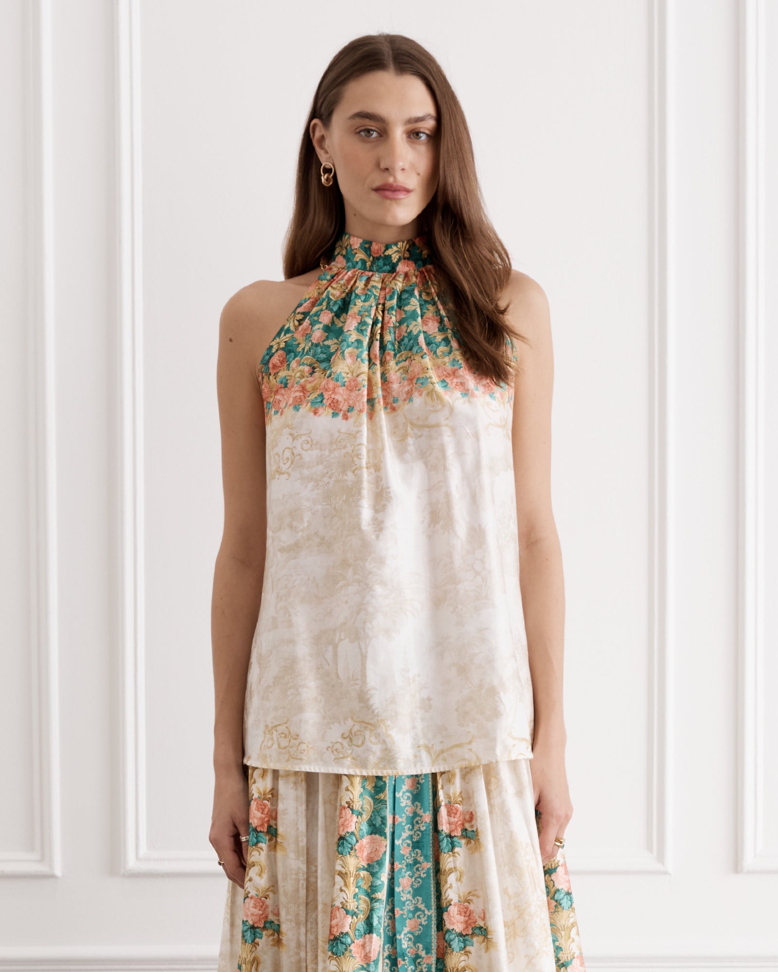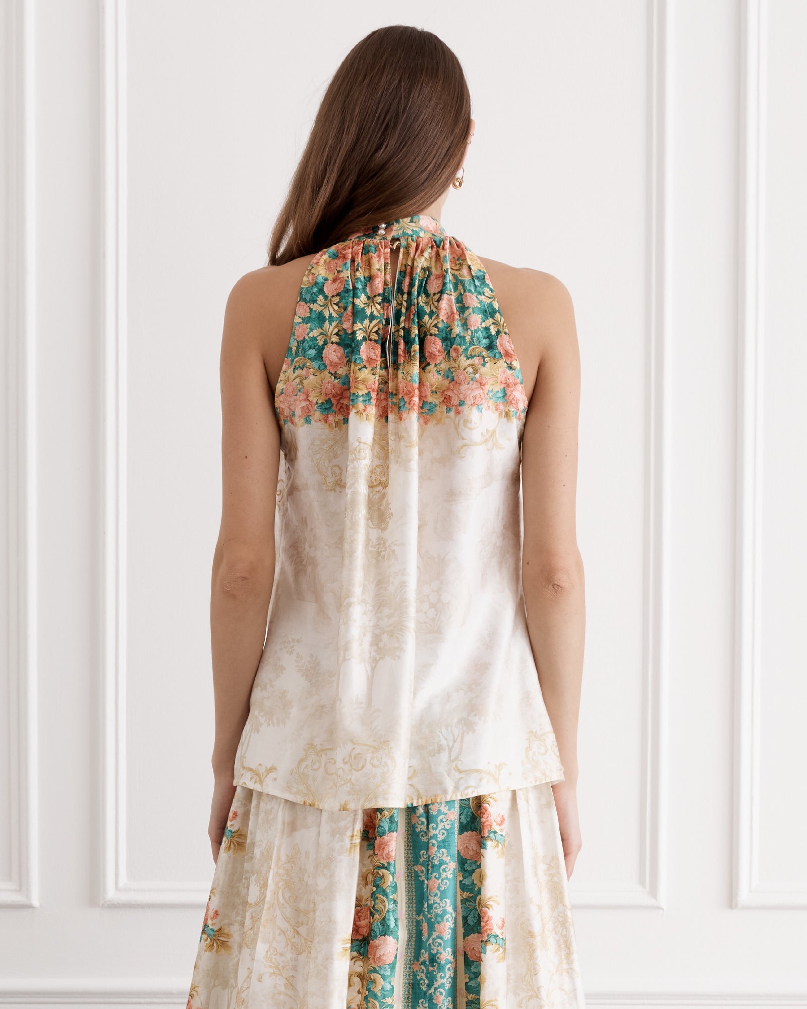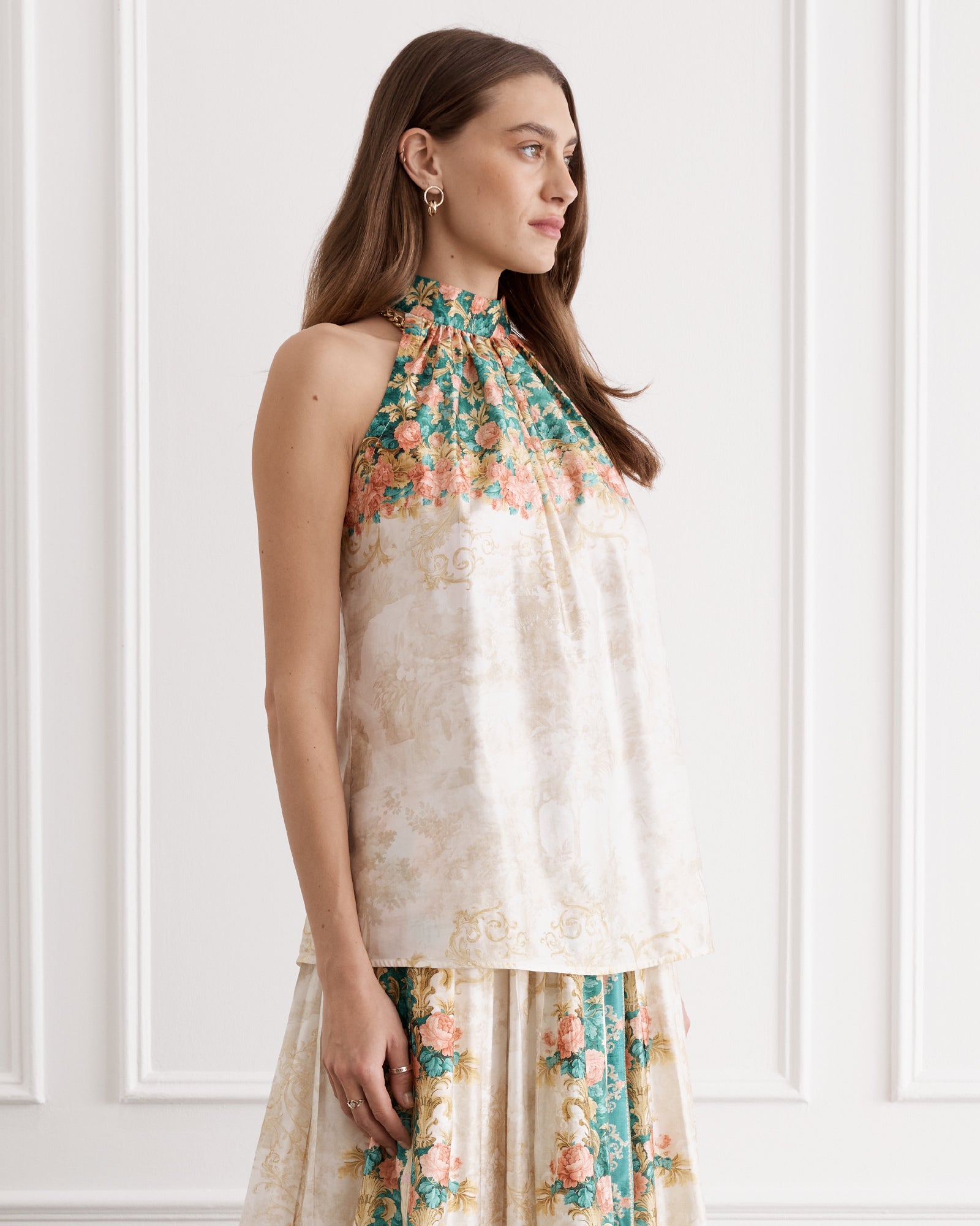 The Alice Top adds a chic statement to trans-seasonal outfitting. Woven from the strength of Cotton and the decadent fluidity of Mulberry Silk, allowing it to hold both structure and softness. A high neckline meets a relaxed silhouette, a harmonious blend of romance and sophistication.