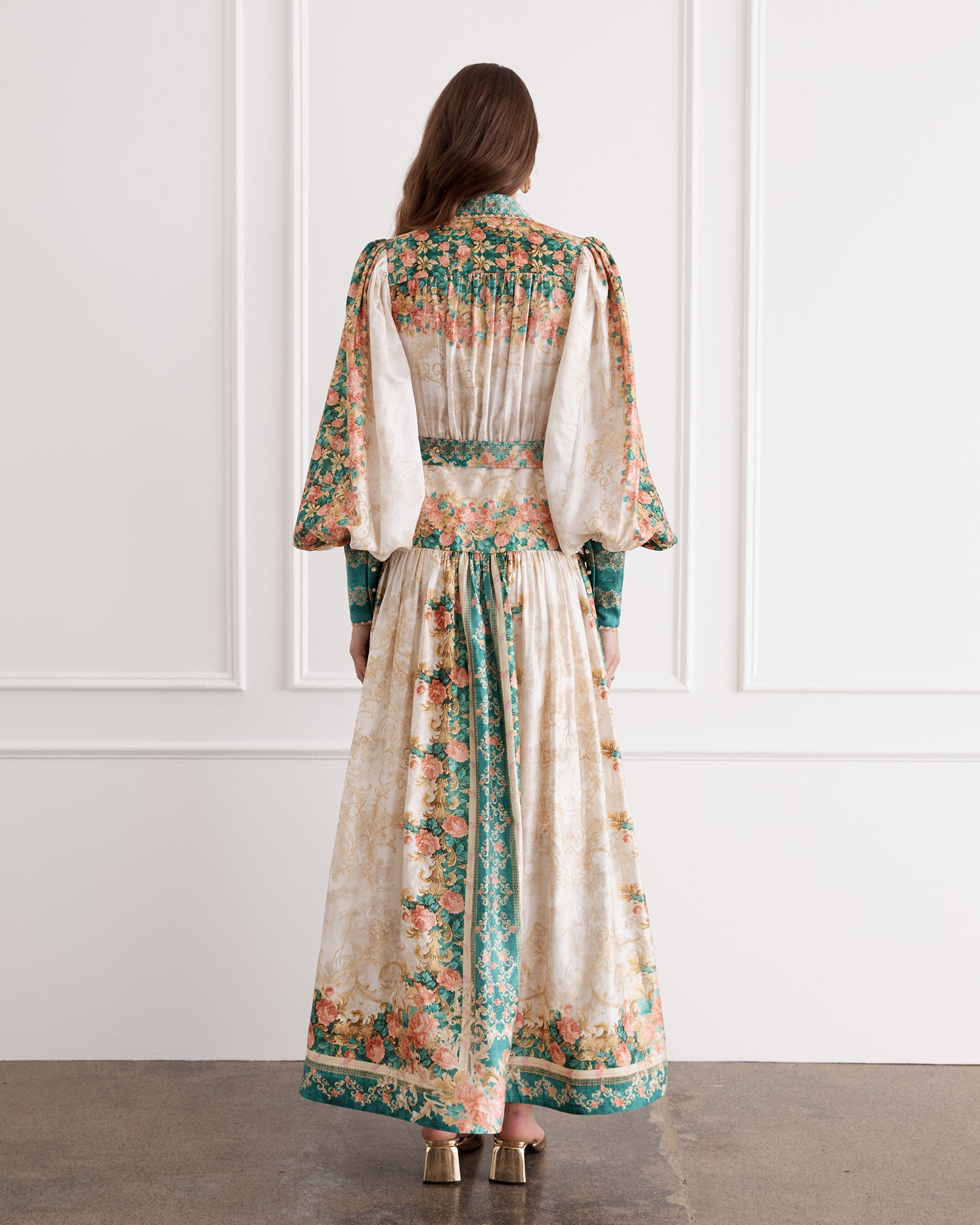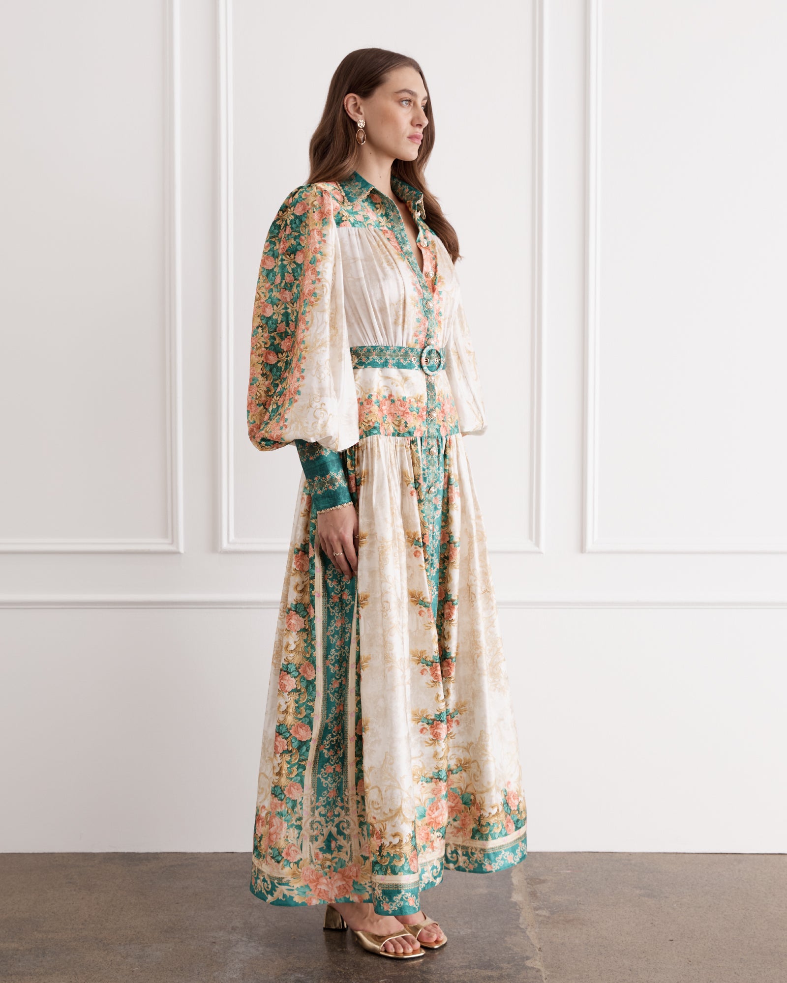 The Genevieve Dress embodies a chic and effortless silhouette. Woven from the softness of Mulberry Silk and the strength of Cotton, allowing it to drape with a fluidity that moves as you do. The artful blouson sleeves balanced with a structured cuff add a flare of boldness and refinement.