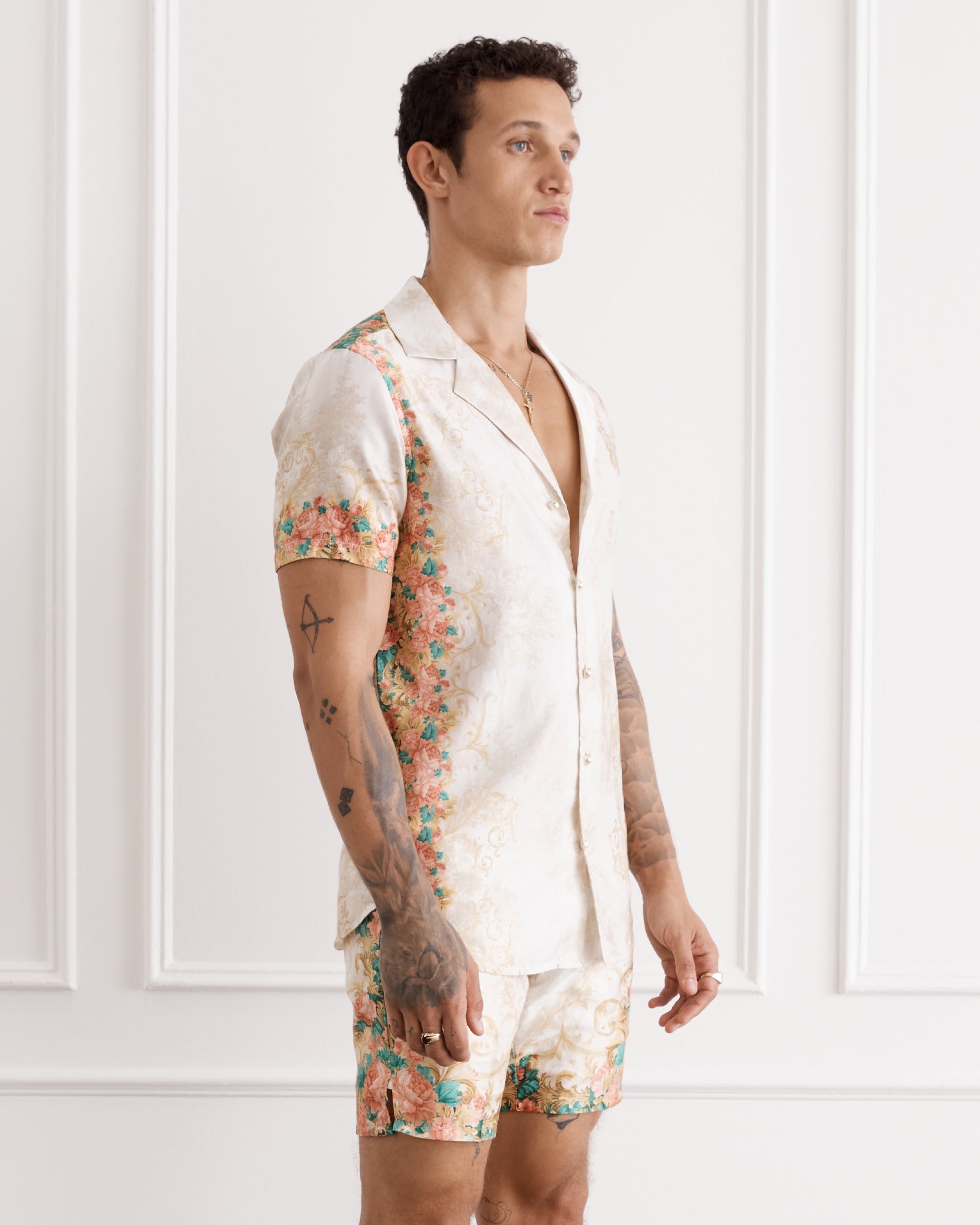 The Jean Short Sleeve Shirt is a symphony of sophistication and ease. Woven from the strength of Cotton and the decadent fluidity of Mulberry Silk, allowing it to hold both structure and softness.