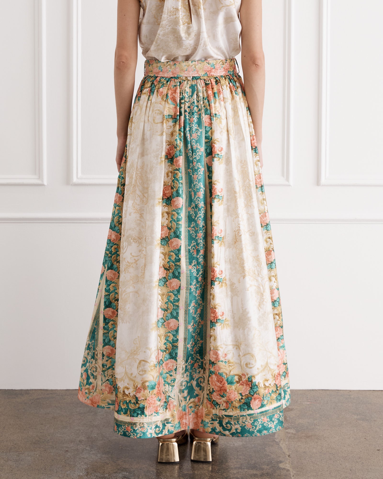 The Lily Maxi Skirt combines romance and refinement. Woven from the strength of Cotton and the decadent fluidity of Mulberry Silk, allowing it to hold both structure and softness. The cascading full length skirt is perfectly balanced with a detachable belt, adding structure to softness.