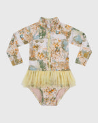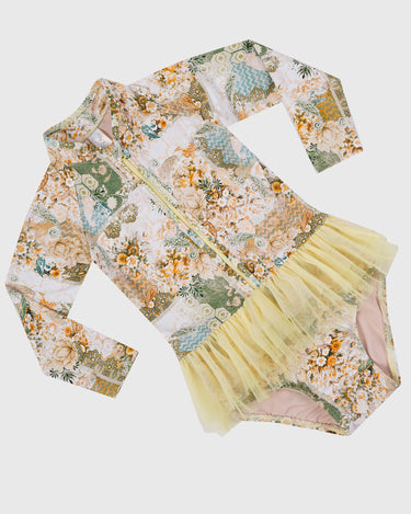 Made for sun-filled adventures, the Long Sleeve One Piece offers all-day play with UPF 50+ protection. With its soft tulle frill and full-length sleeves, it brings a touch of whimsy to every splash, paddle, and seaside adventure.
