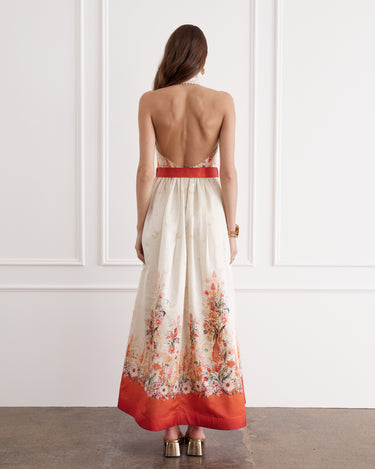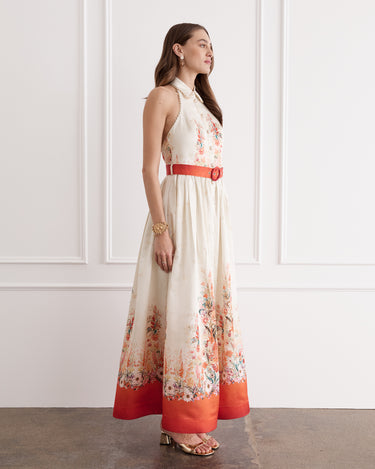 The Aurora Dress embodies artful sophistication. Woven from the strength of Cotton and the decadent fluidity of Mulberry Silk, allowing it to move as you do. A structured waistline meets a cascading skirt, while the open back lends feminine allure.