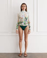 The Hayley Rash Guard offers a UPF 50+ defense beneath a half-turtle-neck collar and seam sealed zipper. Crafted in our decadent Feuillage print with a raglan sleeve and princess seams for a tailored silhouette.