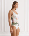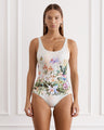 The Nicola DD/E Cup One Piece - where form meets function. Crafted in our decadent Feuillage print. Lined with mesh technology for a contoured fit, and underwire support for a sculpted bustline.