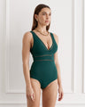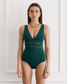 The Eve One Piece - where form meets function. Crafted from a decadent textural jacquard, featuring lattice window panelling at front and back. A structured shoulder offers a form-fitting silhouette.