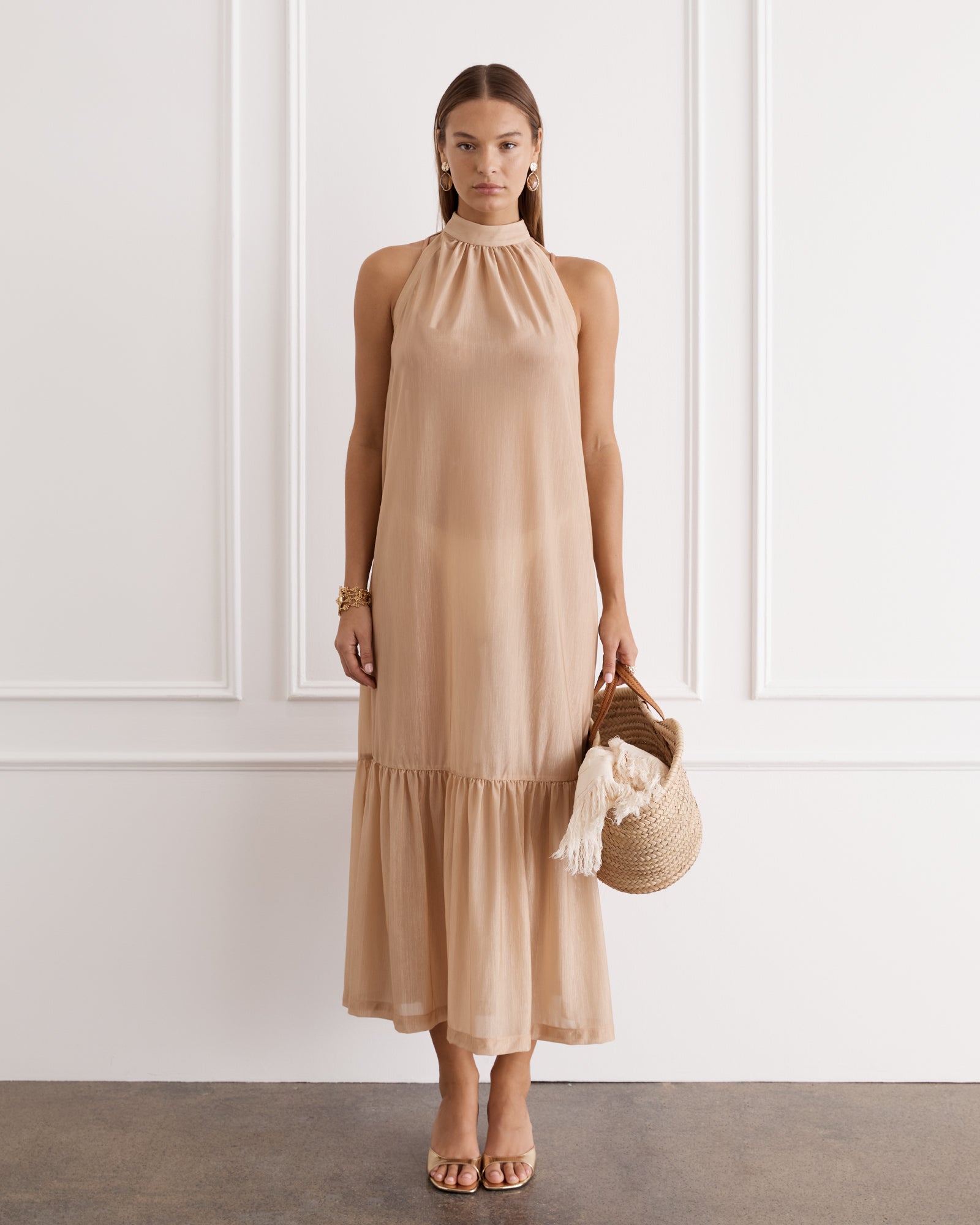 The Molly Dress redefines resort wear staples. Crafted from a light yet decadent fabrication that moves like liquid, floating over the body for a soft and ethereal silhouette. A summer staple.