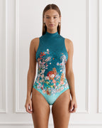 The Adeline One Piece offers both functionality and style. Featuring a high neckline and open back, removable cups and crafted in our decadent fabrication, the Adeline One Piece is a sculptural and modern staple.