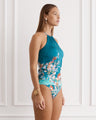 The Lawley Tankini - where function meets form. Crafted in our decadent Sirène print with ruched side seams for a draped ft. Molded removable cups offer support for a sculpted bustline.